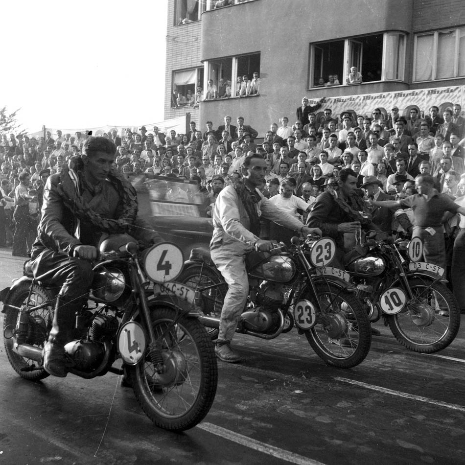 1948 – motocyklové závody Jičín – úraz krční páteře, luxace kolenního kloubu